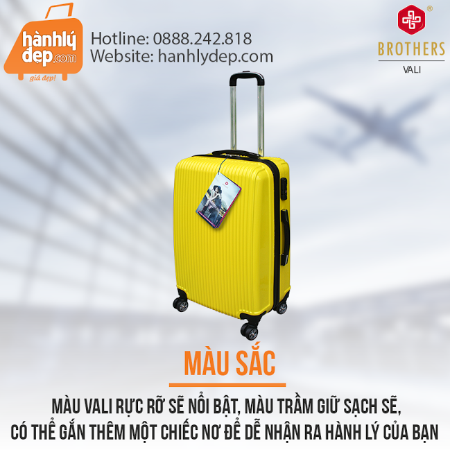 Những chiếc vali màu sắc rực rỡ sẽ nổi bật giữa hàng trăm chiếc vali trên băng chuyền ở sân bay hoặc khoang tàu, giúp bạn dễ dàng nhận ra hành lý của mình. Song, những vali tối màu lại trông sạch sẽ trong suốt chuyến du lịch của bạn. Bởi thế, hãy lựa chọn màu sắc của vali tùy theo sở thích của bạn hoặc muốn vali sạch hay nổi bật nhé! Nếu chọn màu trầm, bạn cũng có thể gắn thêm một chiếc nơ trên vali để đánh dấu và làm nổi bật hành lý của mình!